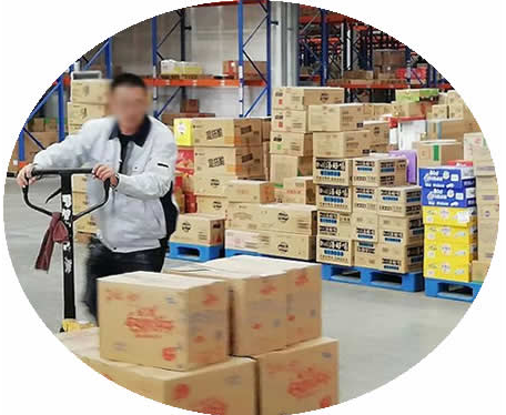 手動(dòng)液壓搬運(yùn)車參與罐頭廠倉庫搬...
