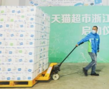手動(dòng)液壓搬運(yùn)車助力天貓超市浙江冷鏈中心