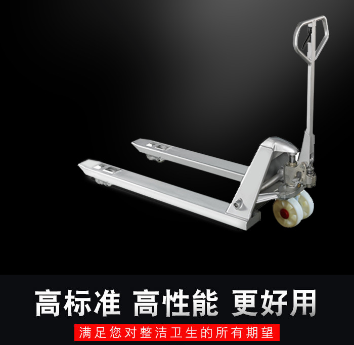 冠航304不銹鋼手動液壓搬運車叉車適用于食品、醫藥、化工、漁業、實驗室等潔凈場所。產品具有耐潮濕、耐腐蝕、耐酸堿、防生銹的特殊性能。冠航不銹鋼手動搬運車全密封油缸配有過載保護裝置,高強度不銹鋼鋼板制作車架,鍛打貨叉加厚設計,更耐用。
