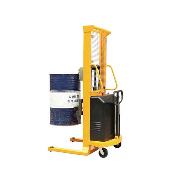 半電動(dòng)油桶堆高車是一種手動(dòng)推拉式,可電動(dòng)升降。