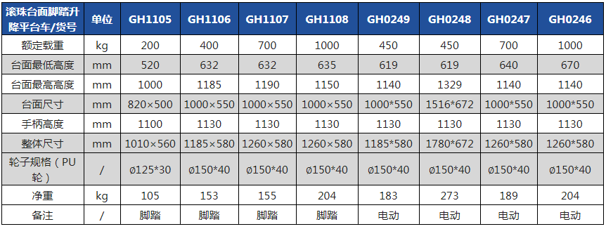冠航牌滾珠式腳踏/電動升降平臺貨物搬運車